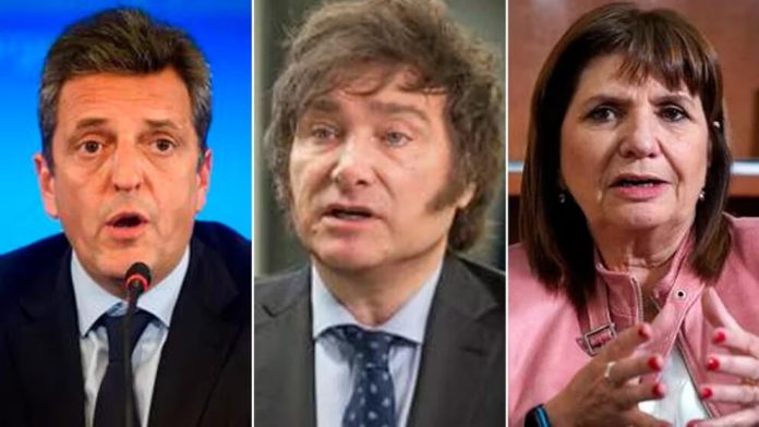 Javier Milei dio el batacazo con La Libertad Avanza (LLA) al quedar en el primer lugar del podio con 7,1 millones de votos, el 30% de los que votaron por alguna opción de la oferta electoral. Pero Juntos por el Cambio (JxC) se ubicó segundo con 6,7 millones, a solo 418.323 votos del líder libertario. Fueron menos de dos puntos de diferencia ya que la principal alianza opositora sumó 28,3%, producto del 17% que cosechó Patricia Bullrich (4 millones de votos) y el 11,3% de Horacio Rodríguez Larreta (2,6 millones). Y en tercer lugar, pero muy cerca, quedó Unión por la Patria (UxP) con 6,4 millones de votos, o sea, 237.340 votos menos que JxC y 655.663 menos que Milei. Sacó 27,3% de los sufragios válidos que se contabilizan en las PASO (los positivos más voto en blanco), porcentaje al que Sergio Massa aportó el 21,4% y Juan Grabois, el 5,9%.