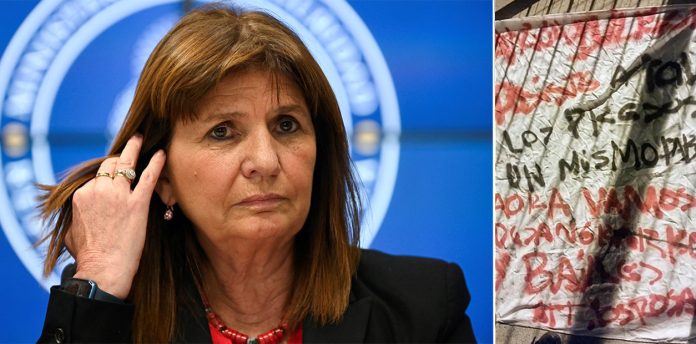 Colgaron un cartel con una amenaza a Patricia Bullrich: “Vamos a dejar negro a Rosario y Buenos Aires”