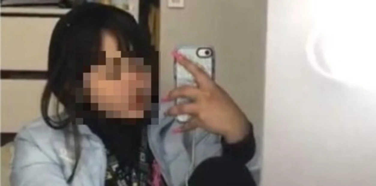 En la imagen se ve a la chica con las uñas recién hechas de color celeste y con una aparente marca de lastimadura en una de las manos.