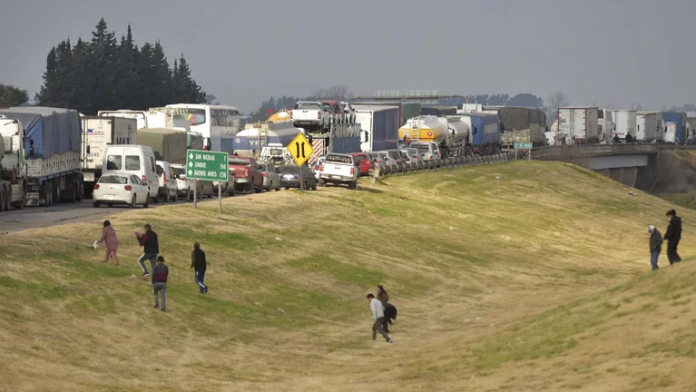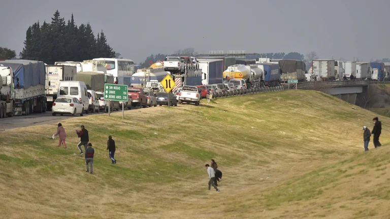 El testimonio de los damnificados durante la protesta que los transportistas realizaron cerca de San Nicolás, sobre la Autopista Buenos Aires – Rosario