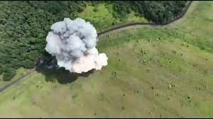 Posteriormente, explota generando una impresionante bola de fuego, captada por la cámara del drone.