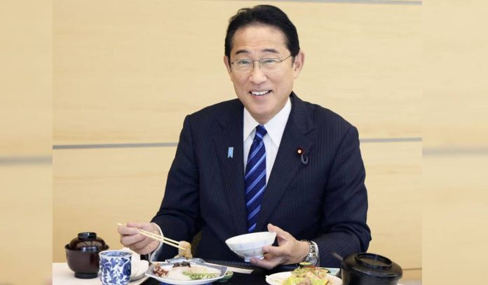 “Tenemos pescado seguro y delicioso“, aseguró el primer ministro japonés. Kishida llevó a cabo su performance acompañado de otros ministros.