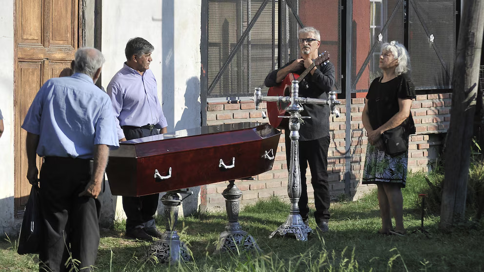 Abrió la ceremonia un pastor amigo de la familia. Luego Omar Gallardo cantó una canción y tocó su guitarra roja, cuya madera se mimetizaba con el barniz vino manzana del ataúd de su hija. A pesar de la pena y el nudo en la garganta no desafinó una sola nota.