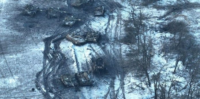 En ese momento, la artillería ucraniana abre fuego, destruye más armaduras y mata a los soldados que salen de las máquinas averiadas.