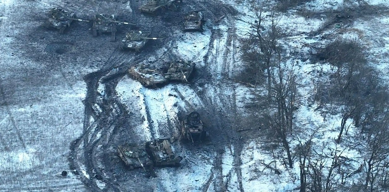 Explotados por minas, alcanzados por la artillería o destruidos por misiles antitanque, los cascos carbonizados de los vehículos blindados rusos ahora ensucian los campos agrícolas en todo Vuhledar, según imágenes de drones militares ucranianos.