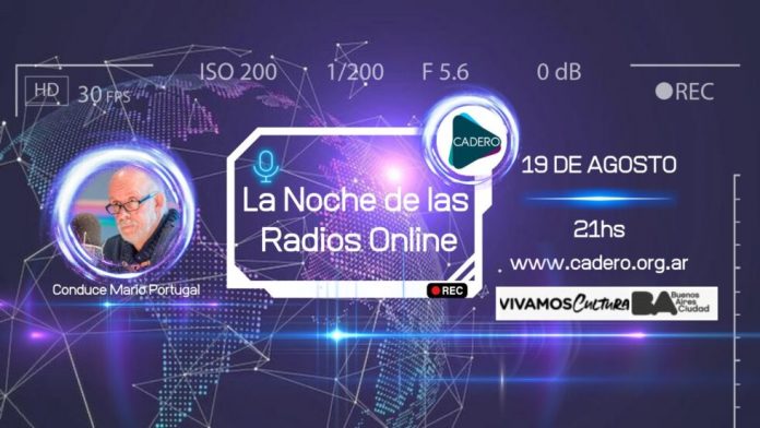 La Noche de las Radio Online tendrá lugar de manera híbrida (RON de todo el país, en plataformas) por primera vez de manera presencial el viernes 19 de agosto en https://vivamoscultura.buenosaires.gob.ar/ y por el canal de Youtube de https://cadero.org.ar/