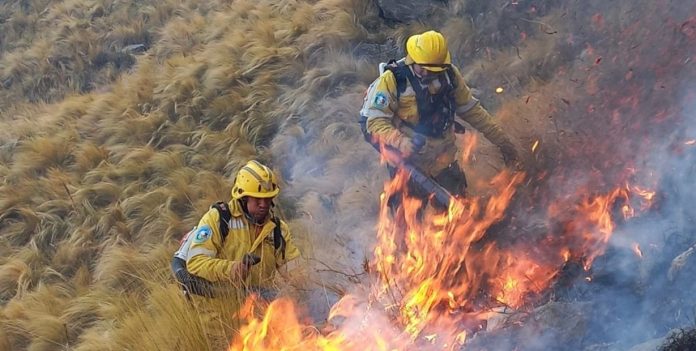 Más de 160 bomberos combatieron este martes el fuego en el Cerro Champaquí, CórdobaMás de 160 bomberos combatieron este martes el fuego en el Cerro Champaquí, Córdoba