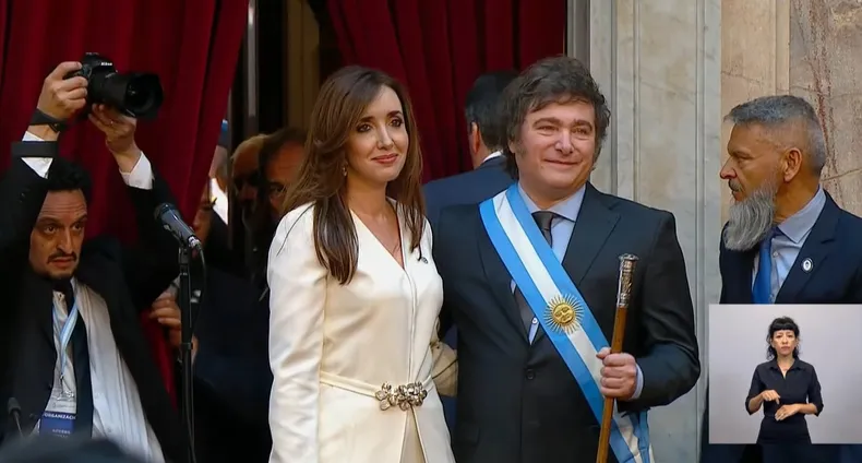 Acompañado por la saliente vicepresidenta Cristina Fernández de Kirchner, Milei ingresó al Salón de Pasos Perdidos para firmar los libros de honor, tal como ocurre en cada recambio presidencial.