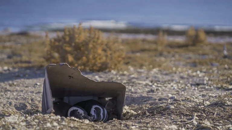 Pese a los obstáculos, los voluntarios apilaron la basura en pequeñas montañas en zonas en las que iban a desembarcar con gomones para llevar desde allí las 5 toneladas hasta un barco más grande que pueda navegar hasta el puerto de Camarones. Pero esa embarcación nunca llegó y las montañas de basura esperan en la isla patagónica custodiada por los animales.