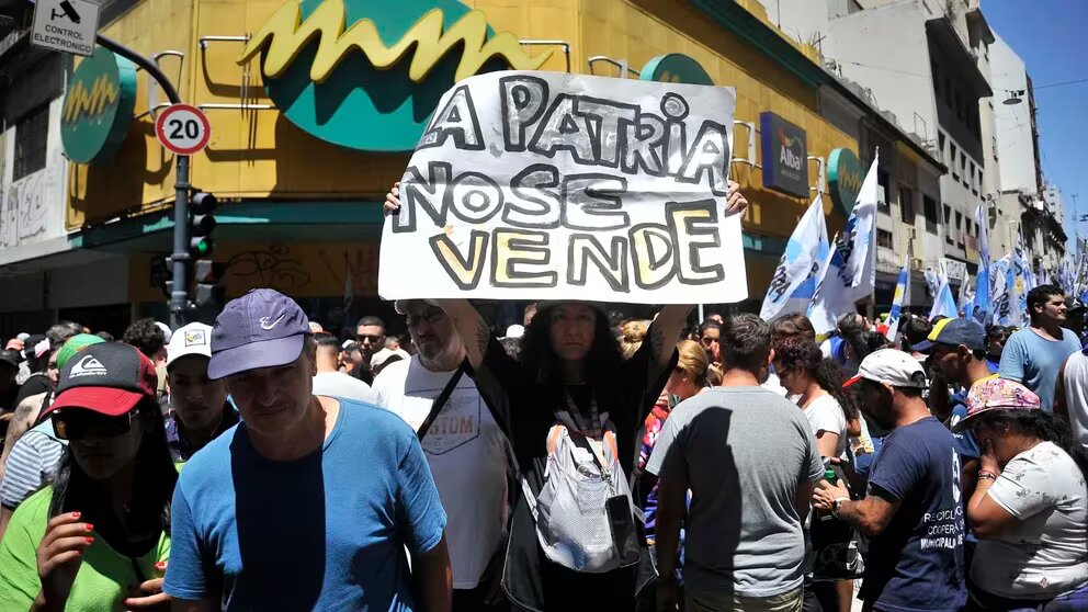 Para el librero, no se trata de una búsqueda de ahorro. “Es solo maldad, el Estado no viene poniendo un peso para que las cosas ocurran así. Tenemos 1.500 librerías en el país con una gran variedad, reconocidas en todo el mundo y eso se va a terminar”, comenta. Su voz se pierde entre las voces de la multitud. Una ola de sonido llega y lo tapa todo. Una única voz que grita, otra vez: “La Patria no se vende”.