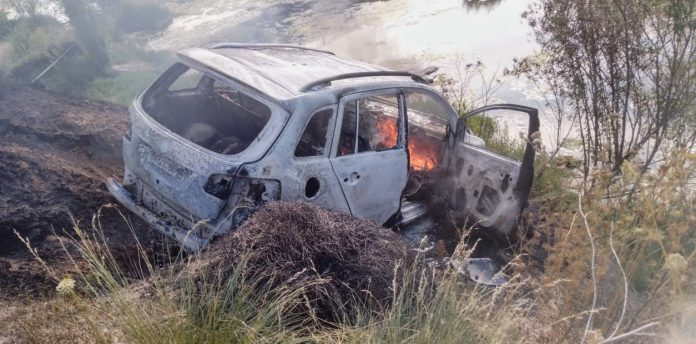 El vehículo estaba al borde de un arroyo, en llamas.