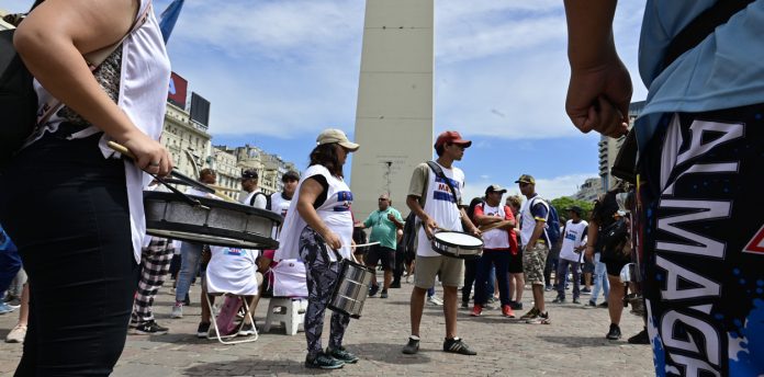 La concentración de las organizaciones comenzó a las 11 en el Obelisco, donde estaba previsto la realización de ollas populares, según informaron a la agencia Télam voceros gremiales.