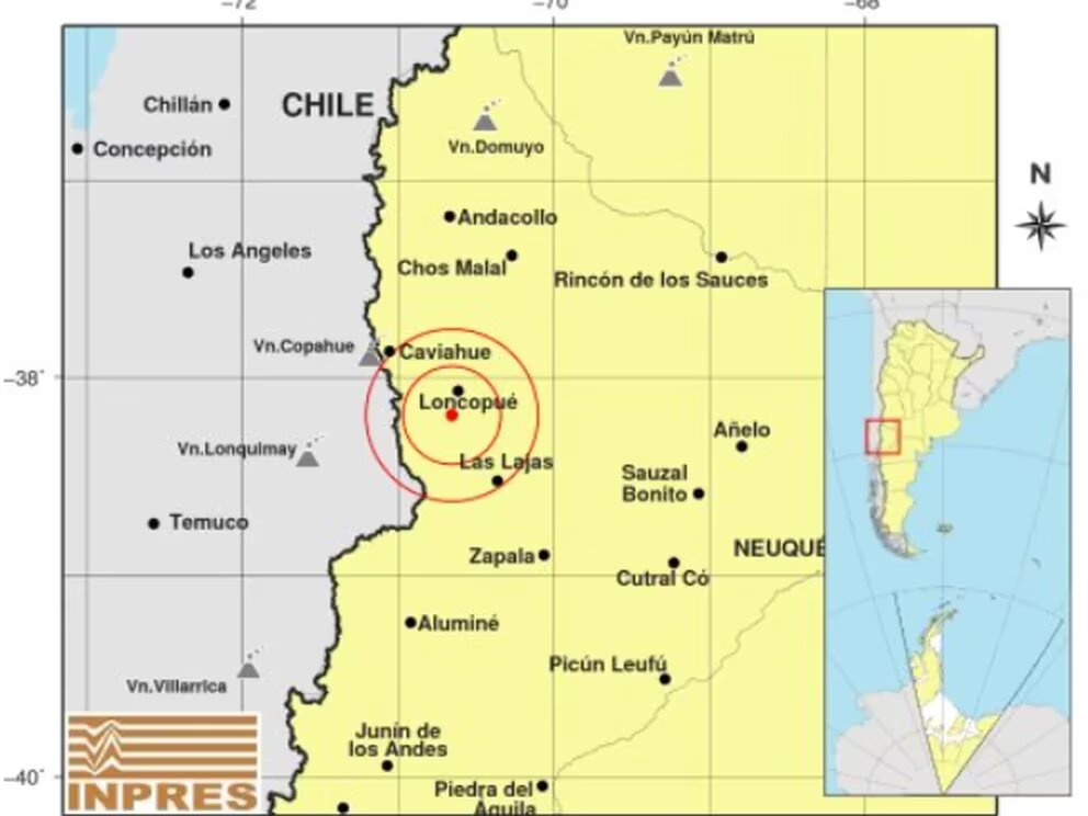 Esta noche de lunes a las 00:05:09, la provincia de Neuquén se vio afectada por un sismo de 6,5 grados en la escala de Richter. De acuerdo con lo publicado por el Instituto Nacional de Prevención Sísmica (Inpres), el movimiento contó con una profundidad de 214 kilómetros y en cuanto a su ubicación geográfica, tuvo lugar a 240 kilómetros del Oeste de la provincia, a 589 del oeste de Santa Rosa y a 14 del sur de Locopué.