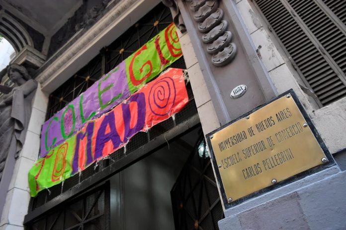 Mientras el centro de estudiantes de la Escuela Superior de Comercio Carlos Pellegrini (CECaP), dependiente de la Universidad de Buenos Aires (UBA), mantiene tomado el colegio desde anoche, las autoridades del establecimiento reconocieron que no pueden hacerse “cargo de la integridad de los estudiantes ni de sus acciones” mientras dure la medida de fuerza.