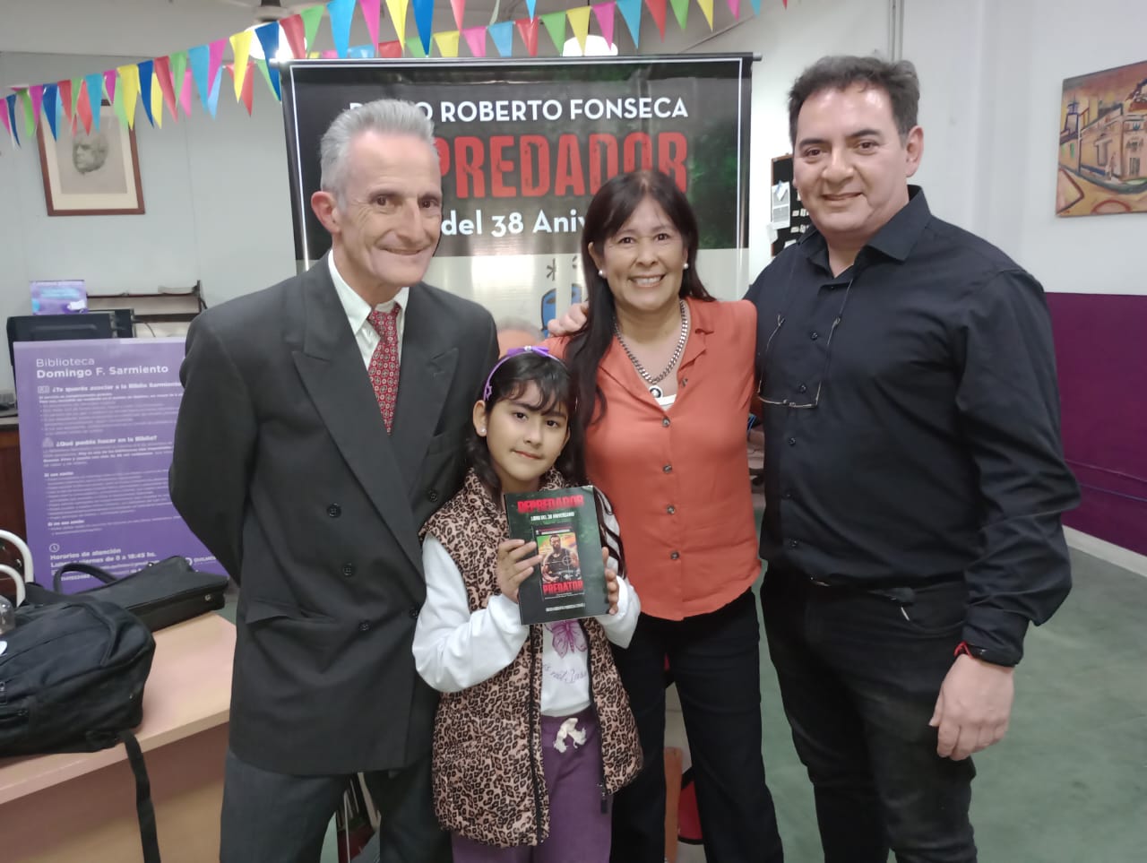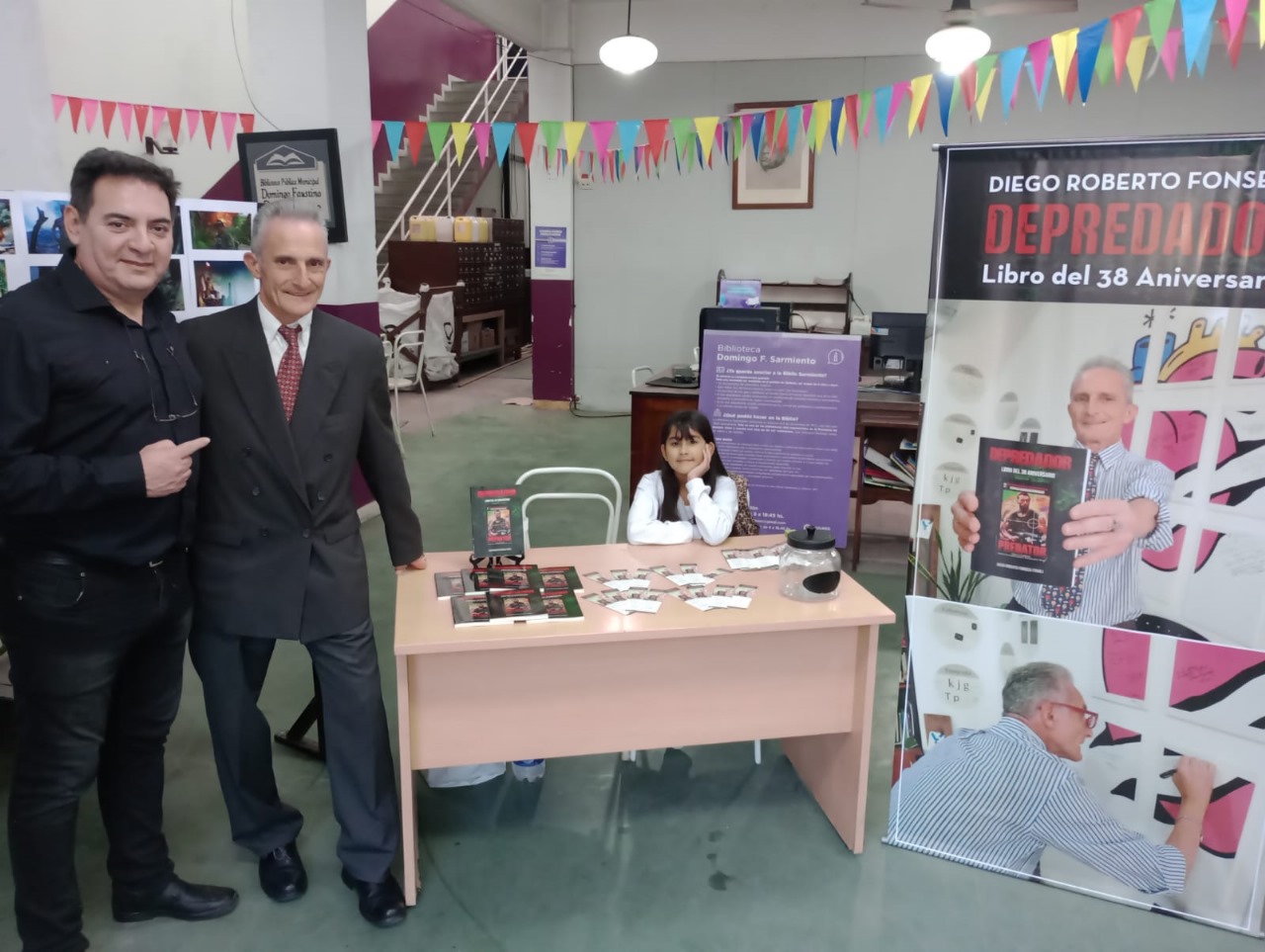 Multimedios El Refugio Radio, estuvo presente el pasado viernes 9 de mayo en la Biblioteca Pública Municipal DOMINGO FAUSTINO SARMIENTO, con concurrencia de público, en lo que fue la presentación del libro: DEPREDADOR LIBRO DEL 38 ANIVERSARIO del Autor Diego Roberto Fonseca.