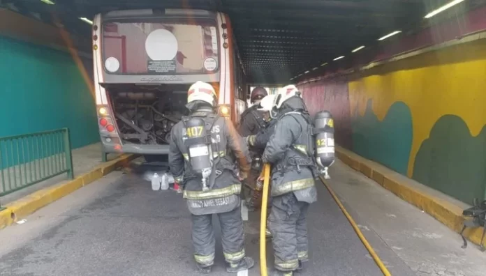 Según las primeras informaciones, el colectivo se detuvo por un recalentamiento en el motor, que provocó humo. Bomberos de la Ciudad asistieron rápidamente y extinguieron el fuego. Luego, continuaron sus trabajos con la limpieza del suelo.