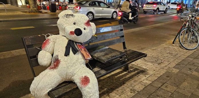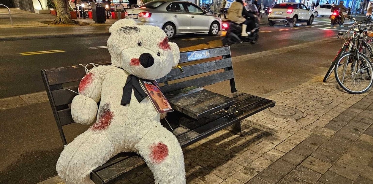 Artistas urbanos intervinieron los bancos de las aceras con osos de peluches tamaño humano que llevan los ojos vendados o sangre sobre la piel, muñecos que han sido ultrajados o vejados como tantos han sufrido los tormentos del islamismo radicalizado hace dos meses. Cada peluche invita a repensar que la vida no ha vuelto a ser posible desde entonces y que no lo será al menos hasta el final de la guerra.