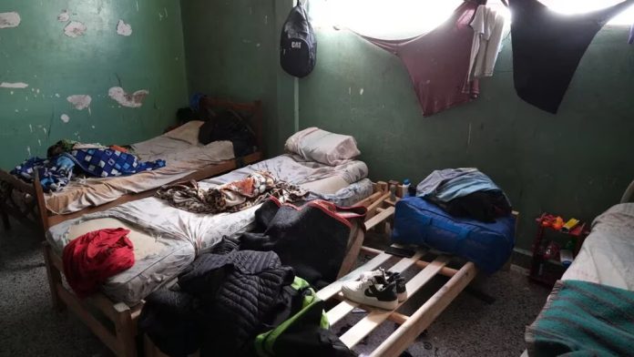 “En la planta superior se encuentra el sector de cocina-comedor donde no se observa las condiciones adecuadas, y en la misma planta se encuentran dos habitaciones de unos cinco metros por cinco metros en donde se observan seis camas y en las otras siete camas notándose situación de hacinamiento”, describieron en el acta del allanamiento.