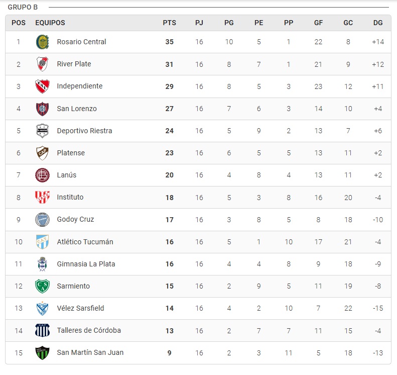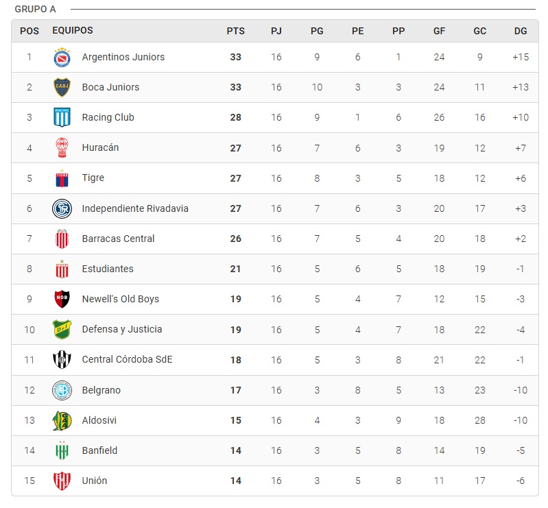 De esta manera, los ocho clasificados de la Zona A son: Argentinos Juniors, Boca Juniors, Racing, Huracán, Independiente Rivadavia, Barracas Central y Estudiantes. Y en la Zona B pasaron: Central, River, Independiente, San Lorenzo, Riestra, Platense, Lanús e Instituto.