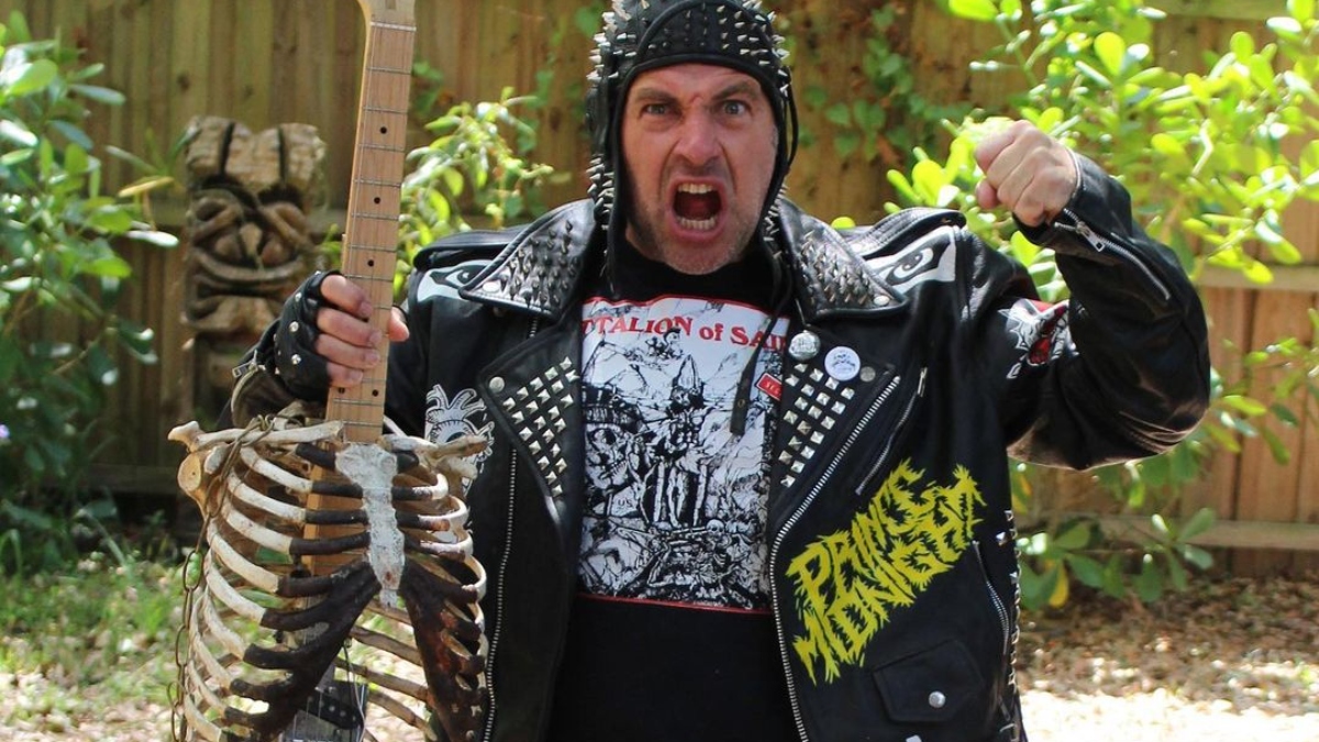 Un aficionado al heavy metal estadounidense compartió un video en YouTube en el que aparece tocando una guitarra eléctrica que él mismo construyó utilizando los restos óseos de su tío.