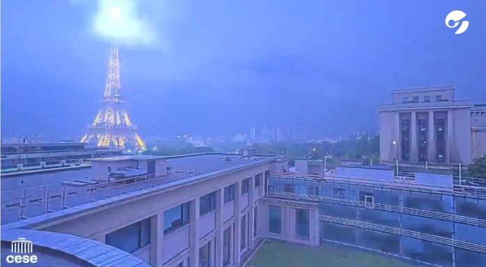 Petite Vidéo d’impact sur la tour pendant l’orage;)#meteofrance#toureiffel#orage#villedeparis#eiffeltower#keraunos@Meteovillespic.twitter.com/Aqmvxtxinv