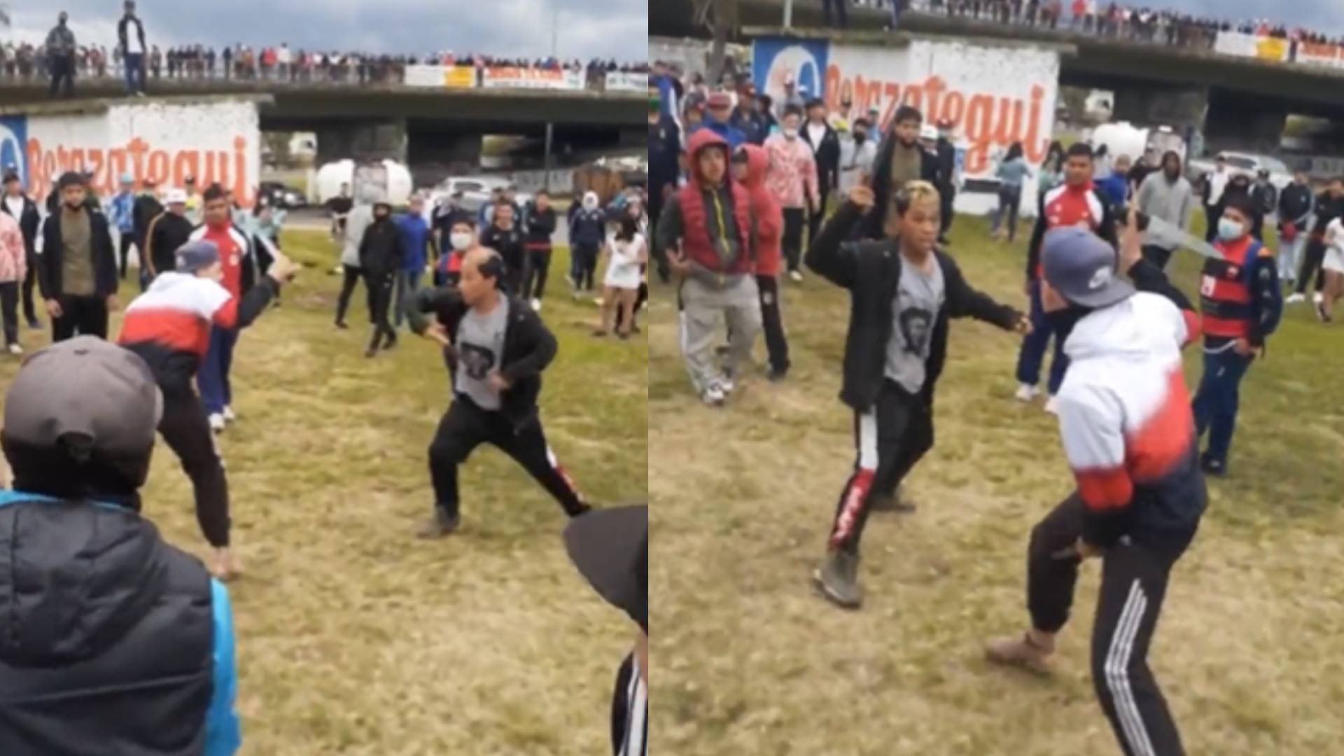 Asistentes al evento filmaron la pelea y lo difundieron en las redes sociales. Allí se puede ver cómo dos jóvenes con facas en sus manos se amenazan con apuñalarse. Pese a los intentos de agredirse, ninguno terminó con heridas en sus cuerpos y lograron separarlos. Sin embargo, la situación se tornó más violenta cuando efectivos policiales llegaron a la zona tras ser alertados sobre el conflicto.